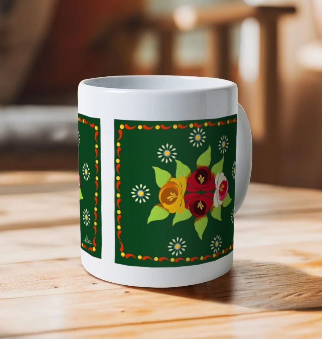 Ceramic Mug: Green Roses and Daisies Canal Art