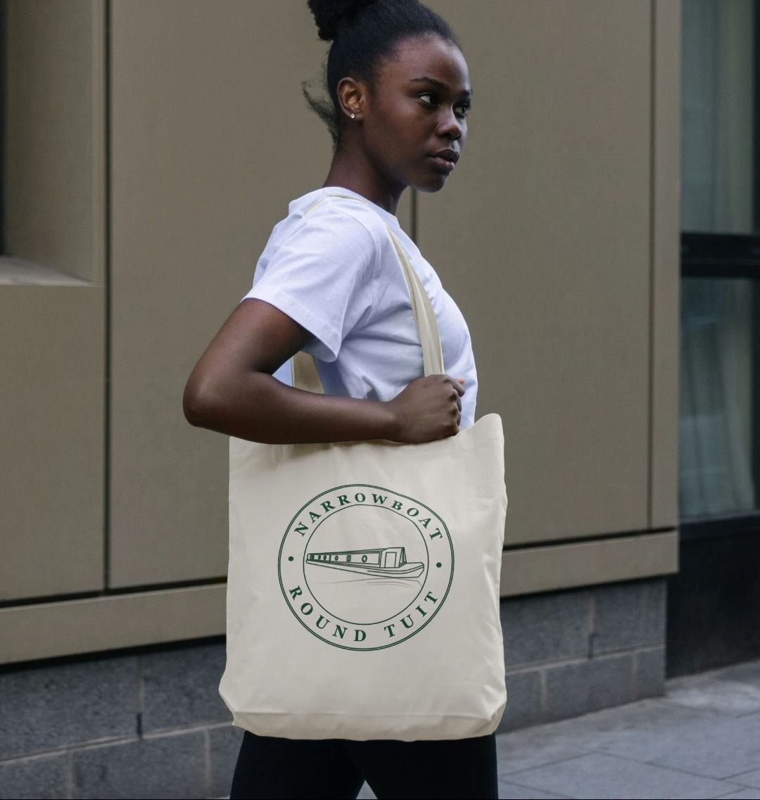 Cotton Tote Bag: Narrowboat Verde